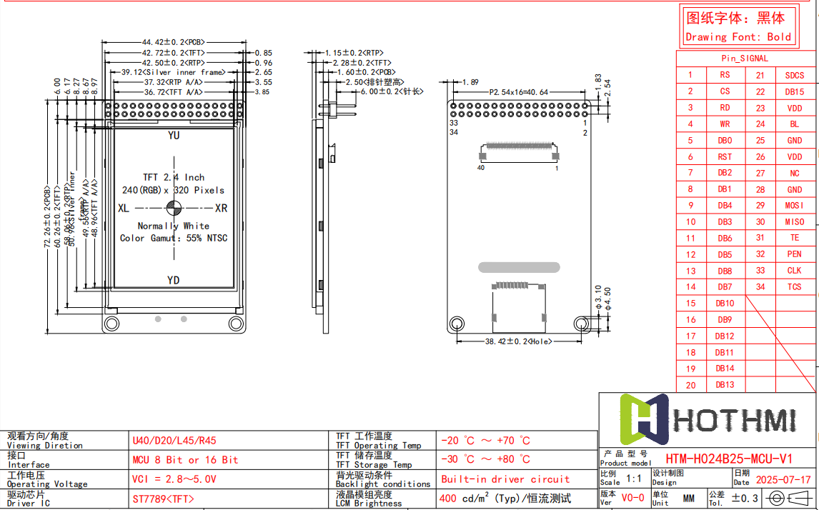 为满足多样化开发需求,工程师亦可单独选用配套FPC排线显示屏(型号TFT-H024B25QVTST4N40)自主开发驱动板,用户没有开发能力,没有关系,我们细心地为您提供了带有主控板的2.4寸智能显示屏HTM-H024B25-UART-A01,产品线还包含其他相同尺寸的2.4英寸TFT LCD。我们支持深度定制服务,涵盖盖板造型、FPC排线规格、触控方案、通讯接口及AG/AR/AF 等表面处理工艺,所有产品均符合ROHS环保标准,为您提供全方位的显示解决方案。